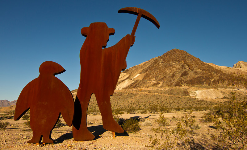 Rhyolite nace en 1905 a la sombra de las prospecciones mineras de las colinas de alrededor. Aquí había oro, y del bueno. De manera que lo que comenzó siendo el campamento de dos piraos en enero de 1905, pasó a tener 1.200 habitantes en 2 semanas, y 2.500 en unos meses. Cegados por la fiebre del oro, los inversores metieron muchos billetes verdes en el asentamiento. En 1907, este campamento en medio del desierto se había convertido en un pueblo y ya contaba con agua corriente, electricidad, teléfono y una línea de ferrocarril. Con esto, la población –oficial- acariciaba los 5.000 habitantes en 1908.